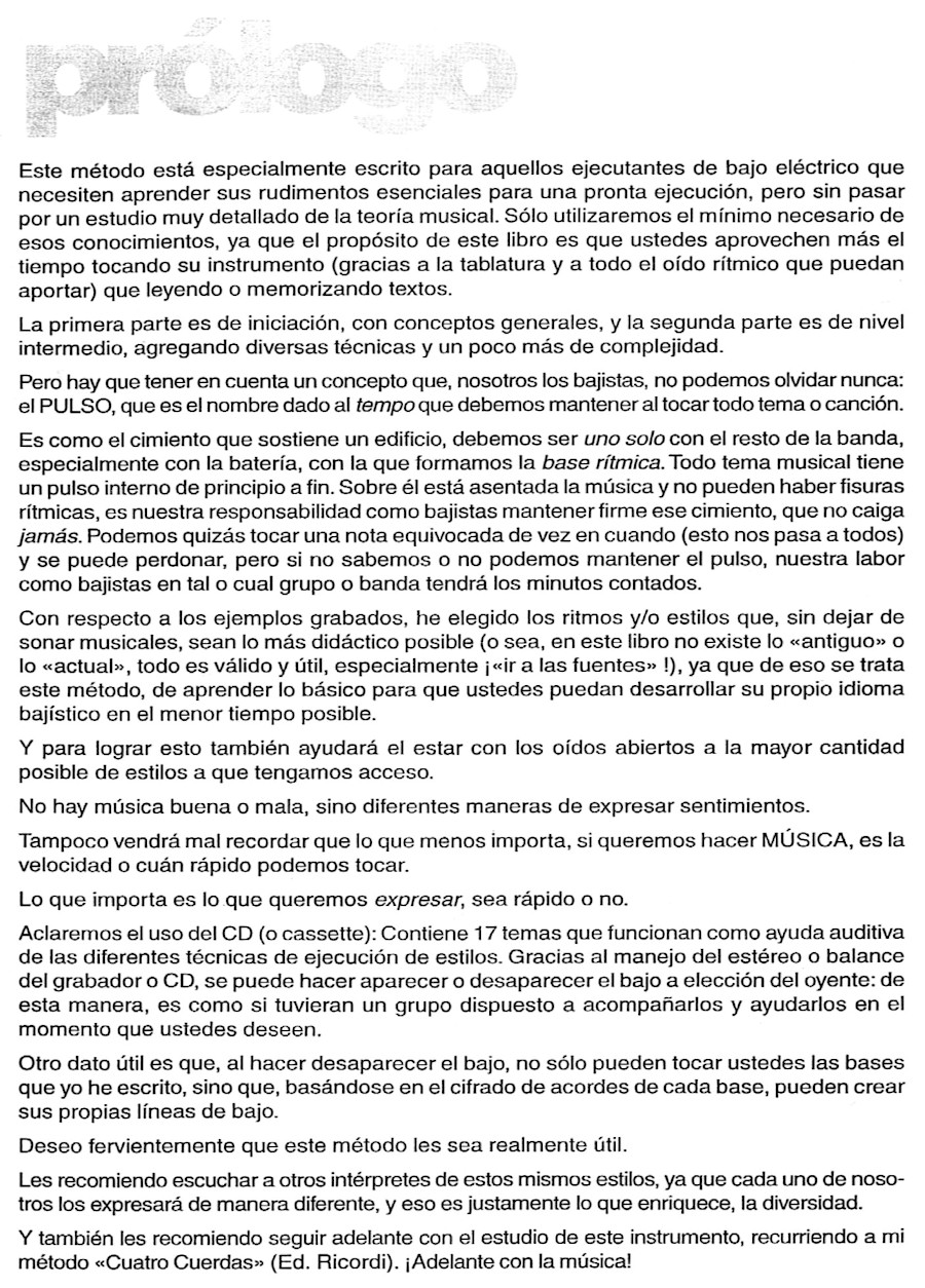 Y así fue como comenzó a darle forma a este libro a modo de entrevista, con una serie de preguntas muy acertadas e inteligentes que me hicieron explayar casi a fondo (hay cosas que no se pueden contar). No sólo está toda mi vida musical hasta hoy y peripecias varias por medio planeta sino también capítulos dedicados por ej. al Cuatro Cuerdas -mi método de bajo ya convertido en un clásico del género-, el 1er capítulo de mi nuevo método de bajo próximo a editarse en 2023 o partituras varias de arreglos de jazz standards y cuarteto de cuerdas.