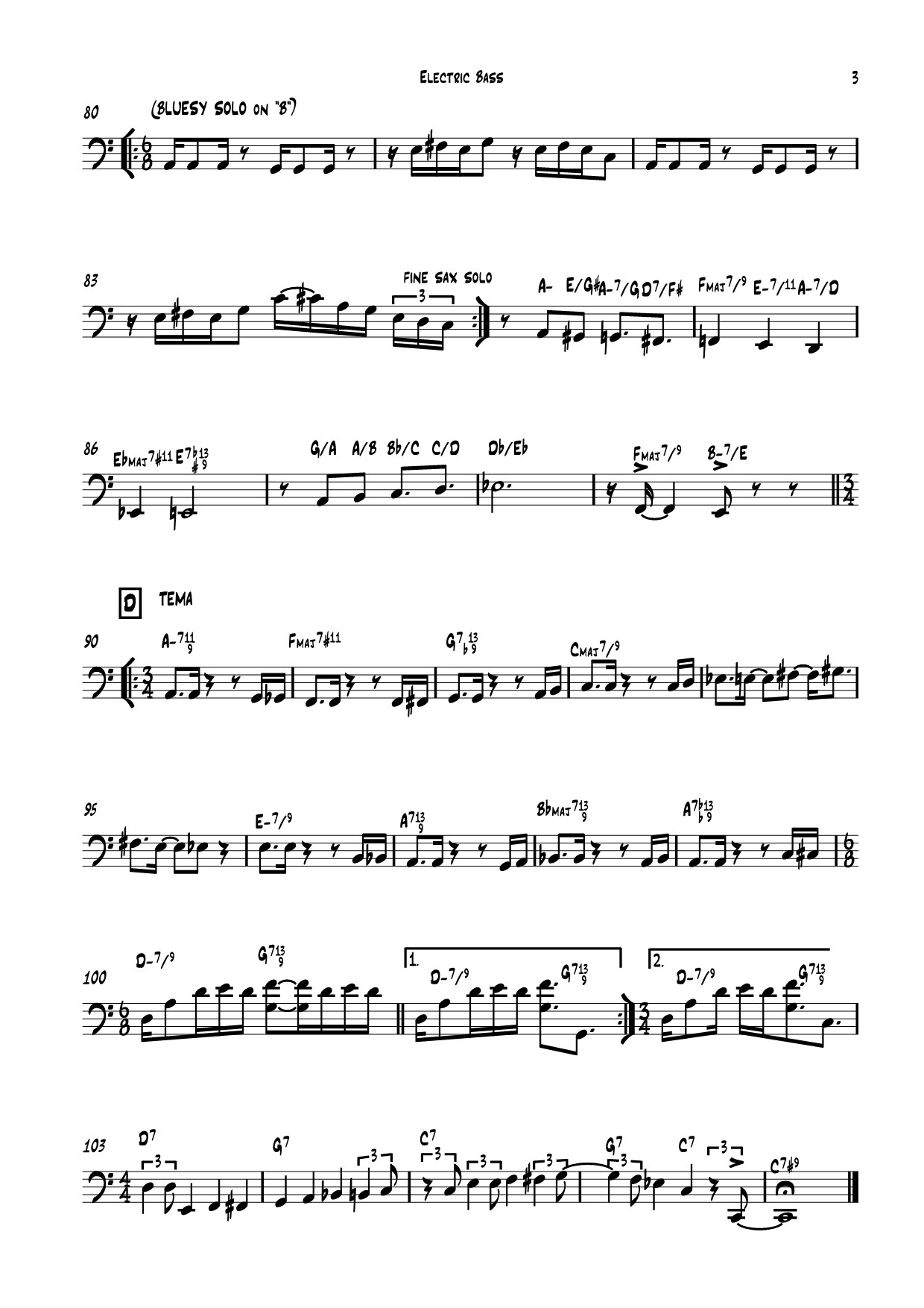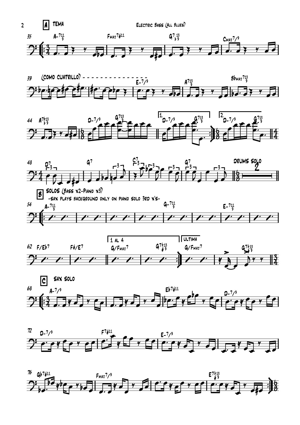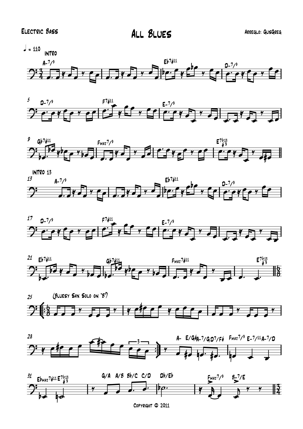"All Blues" (Bass Sheet). (Sigue a la derecha)